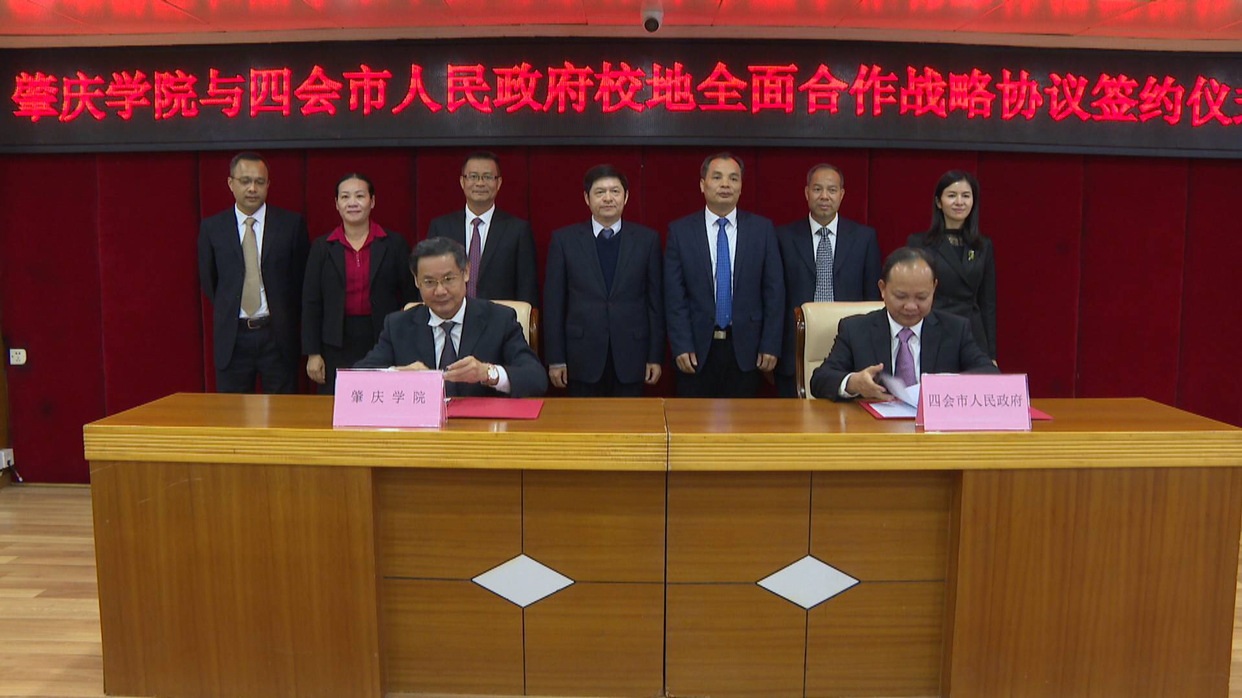 校党委书记曾桓松、校长吴业春,四会市委书记黄建平、市长李伟忠出席签约仪式。
