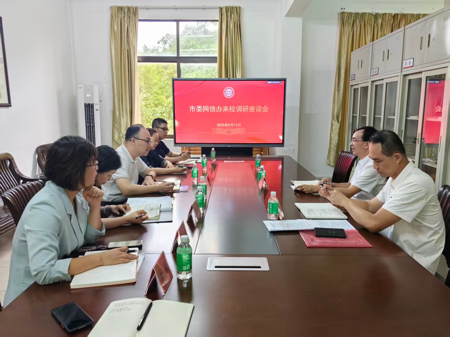 本网讯 9月19日下午,中共肇庆市委网络安全和信息化委员会办公室副主任谭球华一行来校,就“提升肇庆市大学生网络文明素养”及市网信“十五五”规划编制开展专题调研。校党委委员,党政办主任、宣传统战部部长陈前,学生工作部、现代教育技术中心等相关部门负责人参加调研座谈。