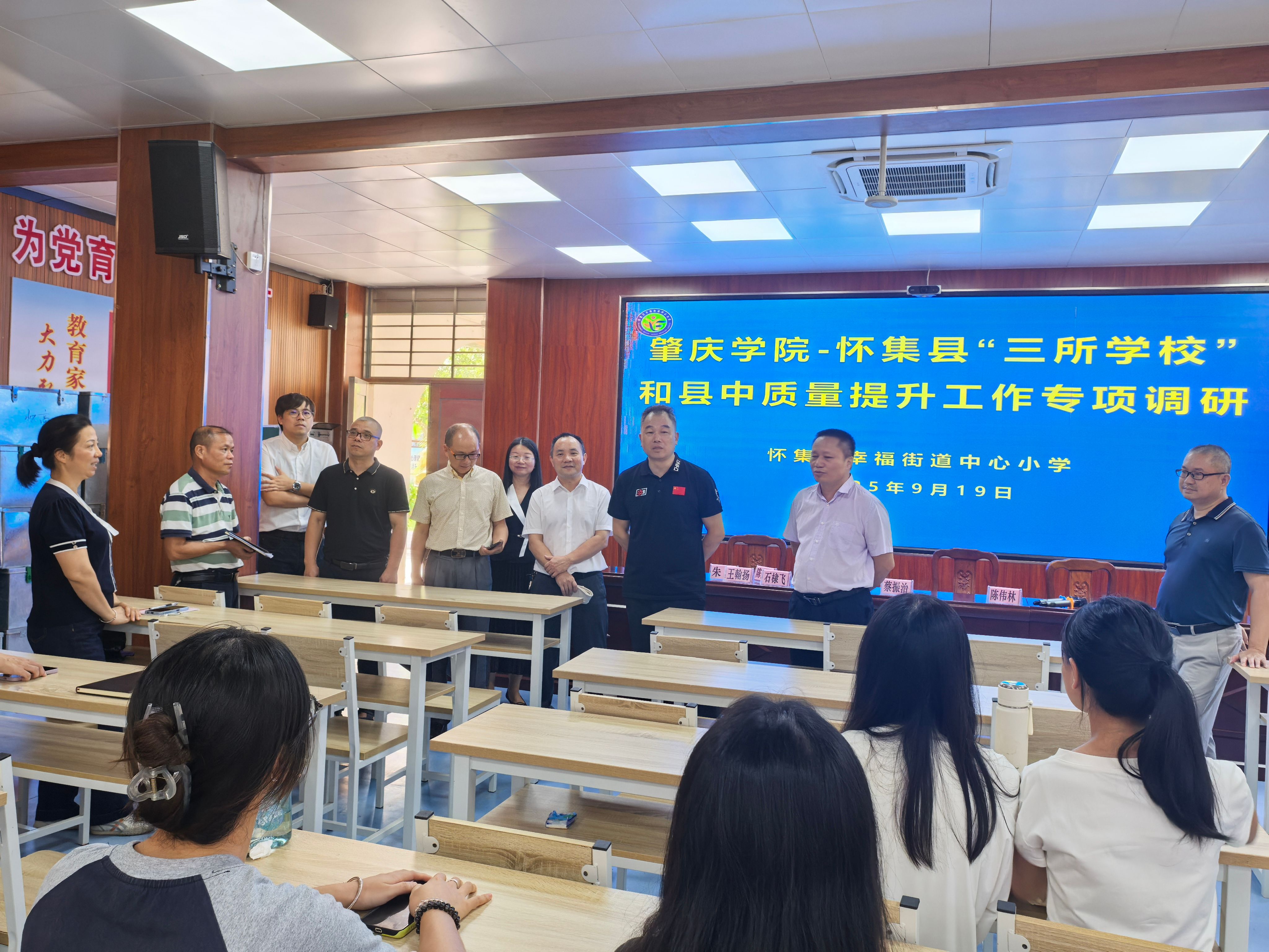 据悉,调研组首先在怀集县教育局召开座谈会,接着在怀集城区走访怀集中学和幸福街道中心小学,在连麦、凤岗两镇走访连麦镇中心小学和凤岗镇初级中学,与局方、校方负责人围绕主题深入交流,还看望了正在怀集县各学校开展教育实习的师范学子。