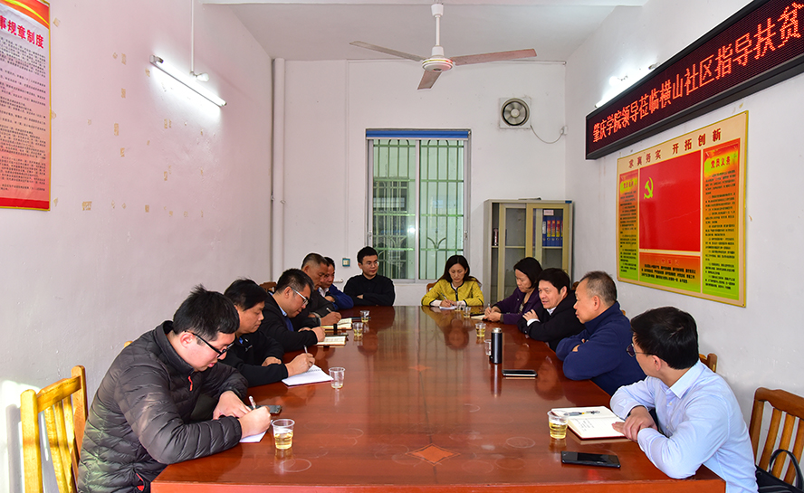 校领导一行查看了扶贫迎检资料并与横山镇委及社区负责人、bat365派驻横山社区的扶贫干部进行座谈。