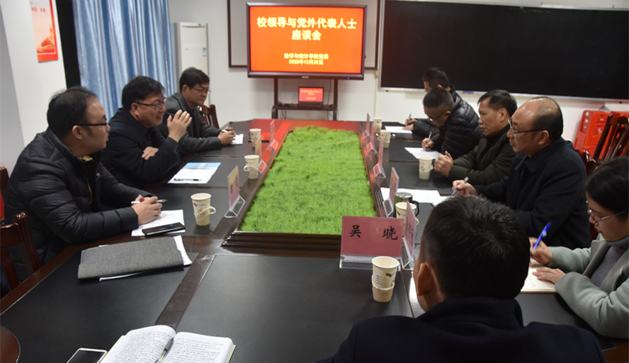 听取汇报后,谢冠华代表学校对数学院党外代表人士表示亲切问候,对党外人士所做的贡献表示感谢,他希望两位党外教师在努力做好本职工作的同时,多提宝贵意见和建议,为学校和学院发展出谋策划。