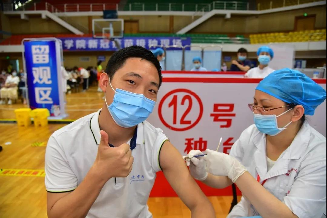 “我刚刚打完疫苗,没有什么异样的感觉。我们国家生产的疫苗质量非常好,值得信赖。”校长吴业春在接种新冠疫苗时,冲镜头竖起了大拇指。