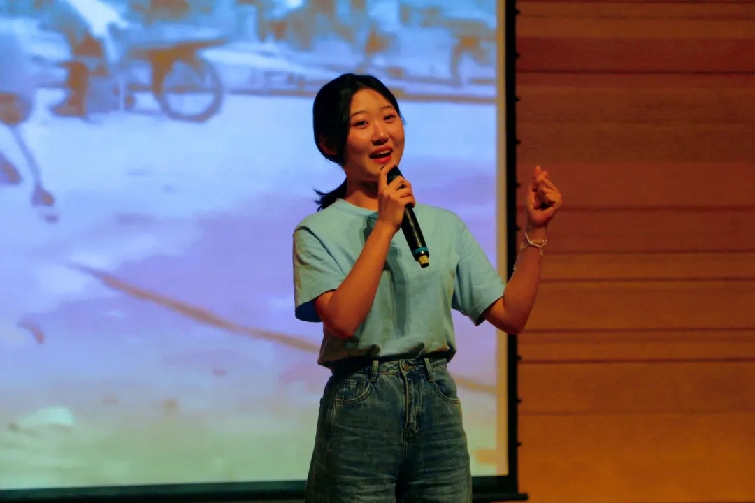 在赛前准备的时候我浏览了很多红色事迹,最印象深刻的还是英雄黄继光的故事。每当提起黄继光,我的脑海挥之不去的是小学课本上那一幅绘制着他以肉身挡住机枪口的彩色插画,他的英雄事迹深深打动着我,于是我选择站在朗诵舞台上向他致敬,让更多人记得他的牺牲和奉献。我更想要号召大家学习他的宝贵精神,身处和平年代,我们更加需要这种精神支撑着我们前行。
