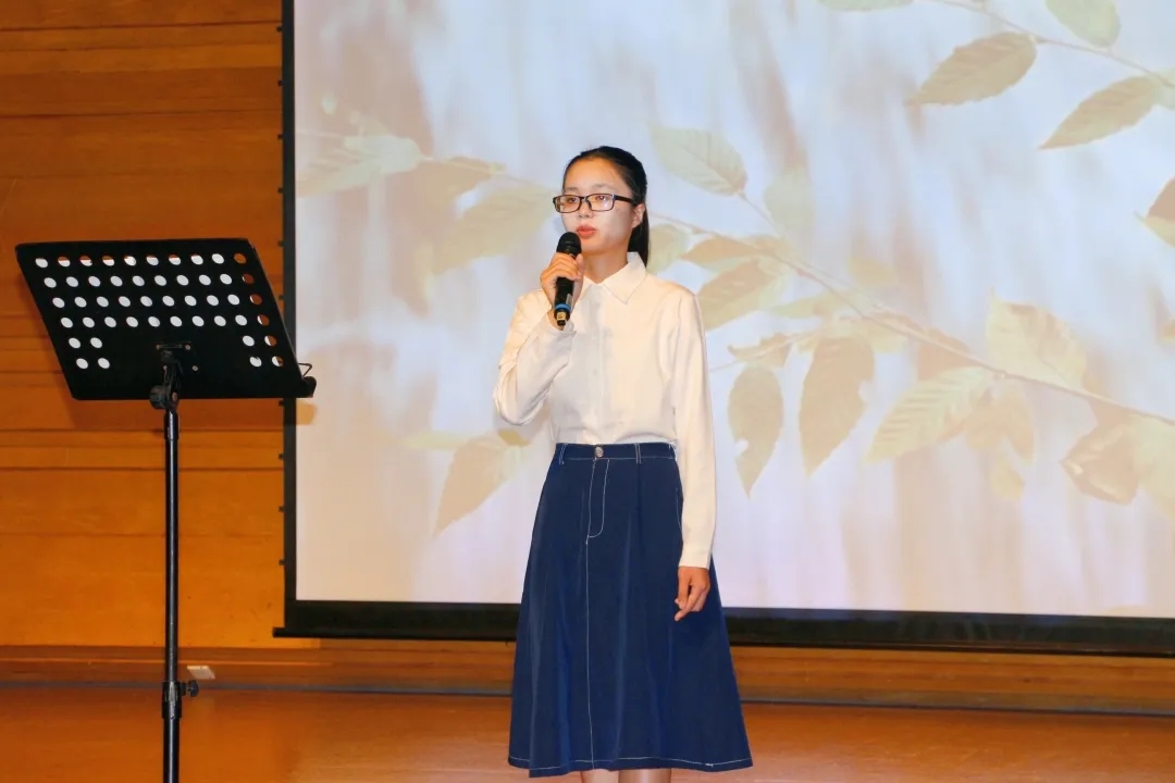 教育科学学院19级小学教育3班黄卓熙诵读《南侨女机工写给父母亲的信》。抗日战争期间,曾有一名华侨女青年教师白雪娇, 隐瞒父母立志参加南洋华侨机工回国抗日,临别时给父母留下告别信。