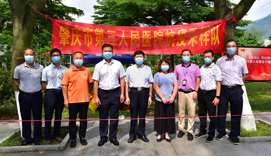 本网讯 6月9日,学校全员核酸检测进入第三天,在全部采样任务即将完成时,校党委书记曾桓松、校长吴业春来到采样现场,看望慰问来自肇庆市第三人民医院的医护人员,向这些三天来一直坚守在采样工作一线的白衣天使表示衷心的感谢和崇高的敬意。校党委副书记、纪委书记黄劲松参加活动。
