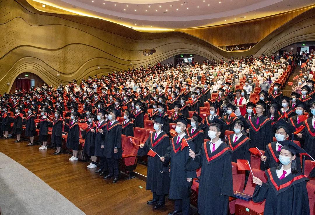 当日,除毕业生代表在现场参加毕业典礼外,另有在校毕业生、学校教师,其他年级学生、家长和社会各界近12万人在云端参与了这场仪式感满满的毕业典礼。