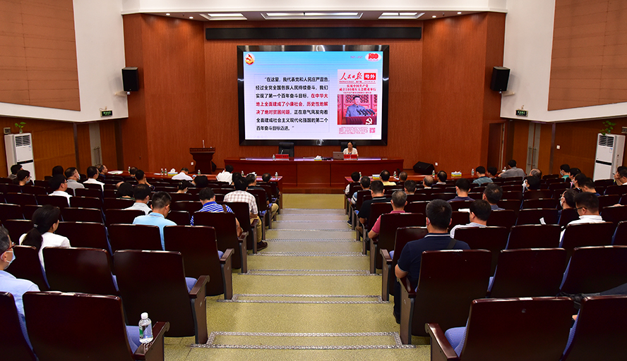 本网讯 根据学校党委理论学习中心组暨中层领导干部党史学习教育暑期读书班的日程安排,7月14日,读书班举行第二场专题辅导报告会,进一步深学细悟百年党史蕴含的思想伟力和真理力量,推动党史学习教育走深走实。本次报告主讲人、学校党史学习教育宣讲团团长、马克思主义学院院长曹顺霞以《精神之源 代代相传》为题,对伟大建党精神奠定中国共产党精神谱系根基的命题做了深入浅出的解读。