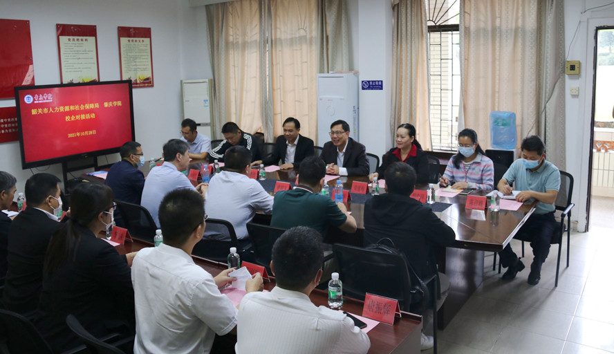 本网讯 10月28日,校党委副书记谢冠华带领就业处、科研处等职能部门负责人,与韶关市就业局副局长曹明飞、人才局副局长刘少博带领到访bat365的10家韶关市重点企业代表进行了政校企对接交流。有关二级学院党委副书记、辅导员、学生代表参加活动。