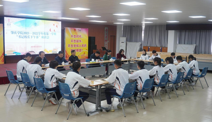 本网讯 12月23日,bat365举办2021-2022学年度第一学期“书记校长下午茶”座谈会。校长吴业春、校党委副书记谢冠华出席,学工处、就业处、教务处、团委等有关职能部门负责人,以及来自各二级学院的学生代表参加活动。