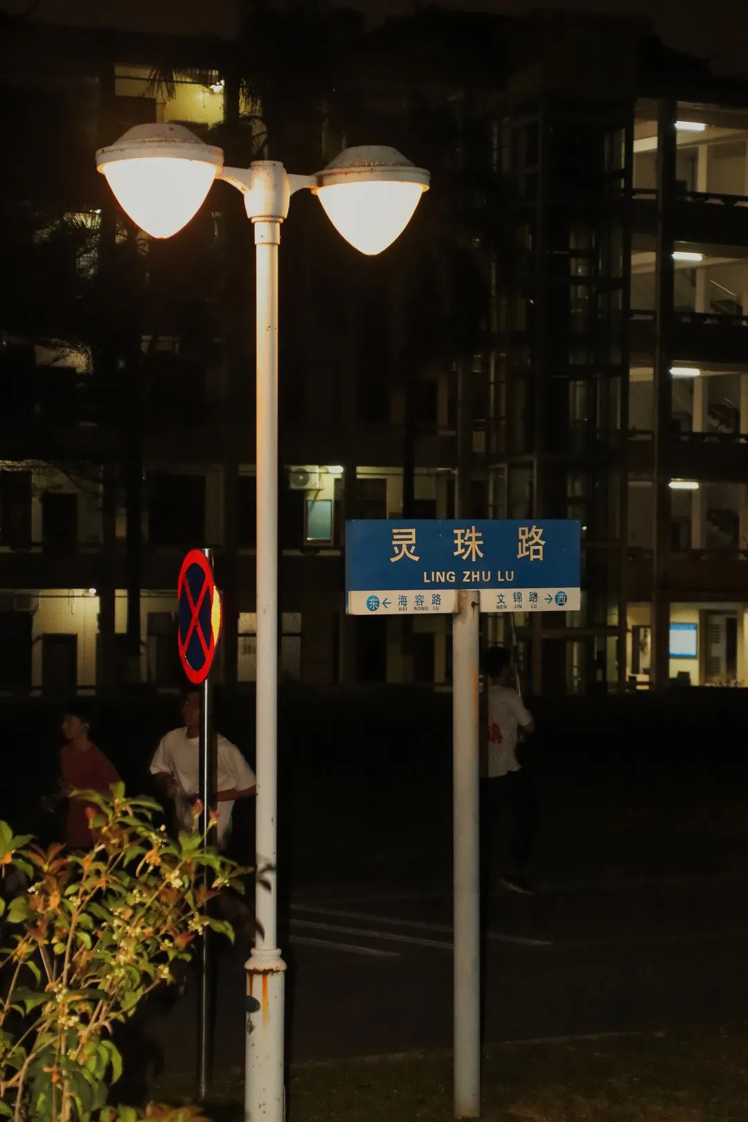 当夜幕降临,盏盏路灯被点亮。这个时候,校道仿佛变换了一种性格,从白昼时的豪气,增加了夜幕和灯火所衬托的柔情。