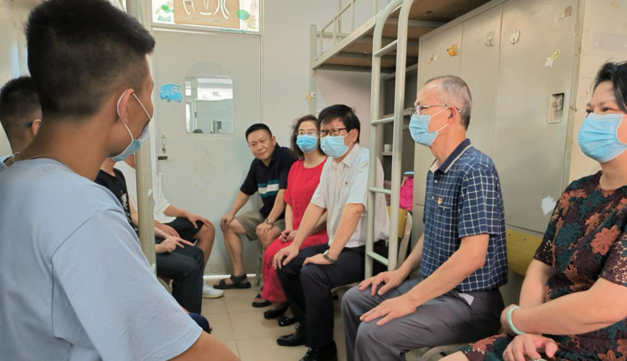 本网讯 为配合做好迎新工作,激励新同学以饱满的精神面貌投入到大学校园学习和生活中,9月13日,学校老领导、关工委主任叶峥嵘来到力行书院、映翠苑看望2022级新生同学并寄予入学祝福。关工委常务副主任蓝世光参加活动。