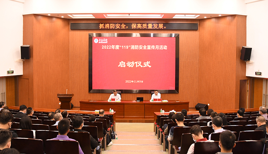 本网讯 11月9日,bat365举办2022年度“119”消防安全宣传月启动仪式。副校长李新昌出席,各二级单位安全工作负责人、消防安全管理员、“119”消防安全宣传月活动领导小组成员参加。保卫处处长黄镜辉主持。