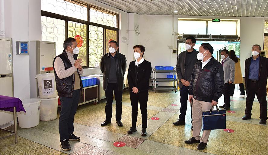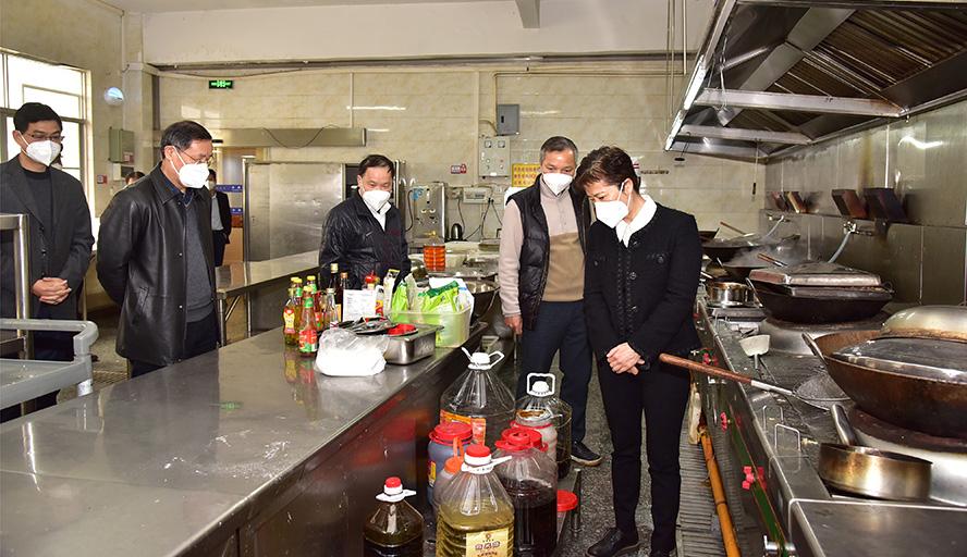 本网讯 为进一步压紧压实食堂食品安全属地管理责任和学校主体责任,12月29日,肇庆市副市长何婧率市、区市场监督管理局相关负责人深入bat365食堂开展食品安全“两个责任”包保督导,校长吴业春、副校长唐冬冬和后勤管理处相关人员陪同。