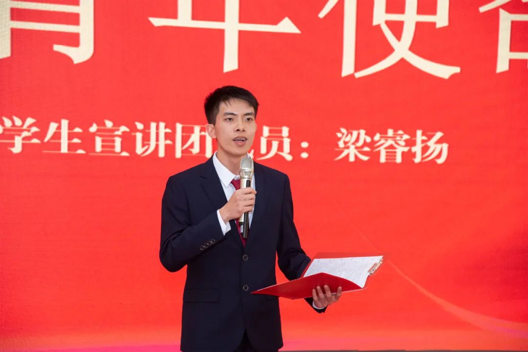 梁睿扬以《弘扬铁军精神 担当青年使命》为题,引导广大青年学子要坚持把学党史和悟思想贯通起来,宣讲西江党史,学习叶挺独立团在北伐战争中的铁军故事,用实际行动学习和传承铁军精神。