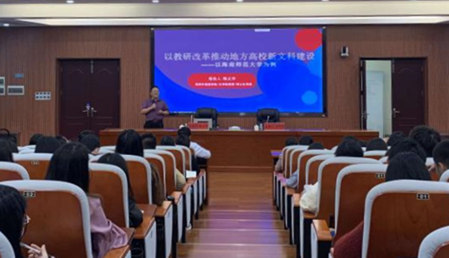 本网讯 314日,海南师范大学外国语学院院长、博士生导师陈义华教授应邀到访外国语学院,开展题为《以教研改革推动地方高校新文科建设》的专题讲座。外国语学院党委书记吕伟荣主持。