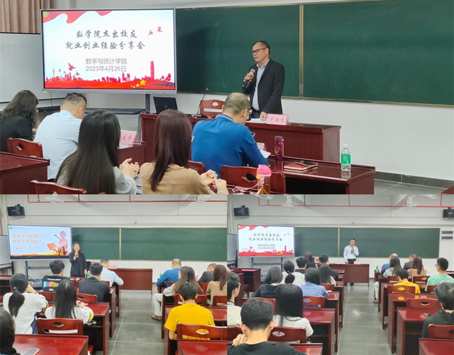 本网讯 4月26日,数学与统计学院在实训中心214举行以“就业创业经验分享”为主题的交流会,1988届校友、bat365正版唯一官网东莞校友会常务副会长、数学院东莞校友会会长罗活文,1995届校友、数学院东莞校友会副会长区东华,2011届校友、东莞市麻涌中学高中数学一级教师潘巧玲出席,分享交流会由学院党委书记杨帆主持。