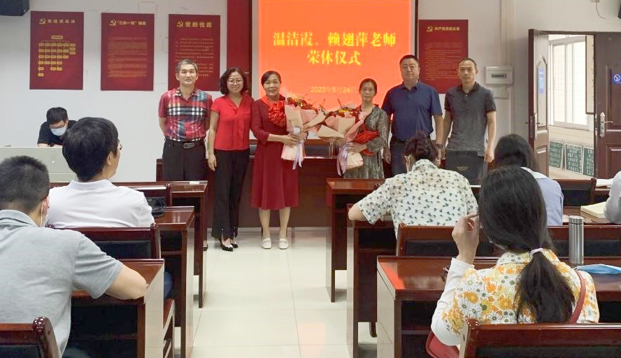 本网讯 5月24日,文学院为温洁霞、赖翅萍两位退休女教师举行荣休仪式,文学院全体教工参加。