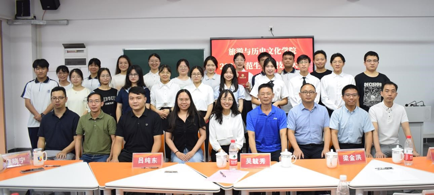 本网讯 为进一步强化师范生教学技能,提高同学们教学水平和实践能力,6月14日,旅游学院举行地理科学兼职教师聘任仪式暨地理科学师范生技能比赛。李朝军院长、地理科学系主任童晓宁博士出席。