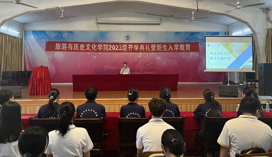 本网讯 为帮助2023级新生更好了解学校国际交流的项目和相关政策,9月13日,旅游学院邀请国际合作与交流处处长钟伙彬主讲国际交流教育专题讲座。旅游学院党委书记杨雪梅以及全体新生参加。