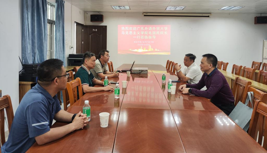 本网讯 10月8日,政法学院党委书记侯玉基、院长祁建平与到访的广东外语外贸大学马克思主义学院院长毛国民、正处级组织员林绍雄进行了座谈交流。