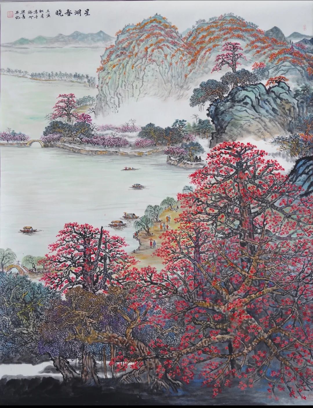 本网讯  10月9日,绿美广东——岭南美术名家作品展在广东省文联艺术馆开幕,现场展出200多幅精品画作,涵盖油画、水彩画、国画等画种,集中反映绿美广东生态建设成果,向市民群众展示了一幅幅生态兴、生活美、人与自然和谐共生的绿美广东新画卷。其中,美术学院院长梁善的两幅国画作品《星湖春晓》《丹荔丰年》受邀参展,亮相广东省文联艺术馆,吸引了广大市民和艺术爱好者的驻足观赏。