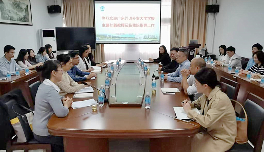 本网讯 10月11日,广东外语外贸大学学报主编孙毅来到外国语学院,与教师代表开展座谈交流。副校长胡文涛、学报主编李曙豪出席座谈会。