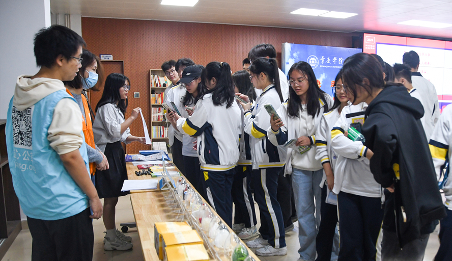 讲座结束后,彭小玫对学生提出的问题进行解答,并引导学生参观毒品模拟的实物展览。