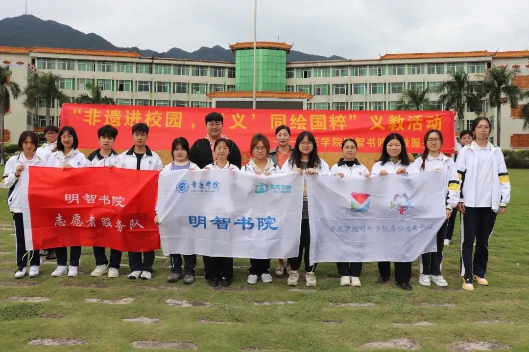 本网讯 为加强砚园学子的思想品德教育,提高同学们的社会实践能力,促进青少年对中华优秀传统文化的热情和积极性。“一站式”学生社区明智书院志愿服务队前往高要区第一小学开展“非遗进校园 ‘义’同绘国粹”志愿服务活动。
