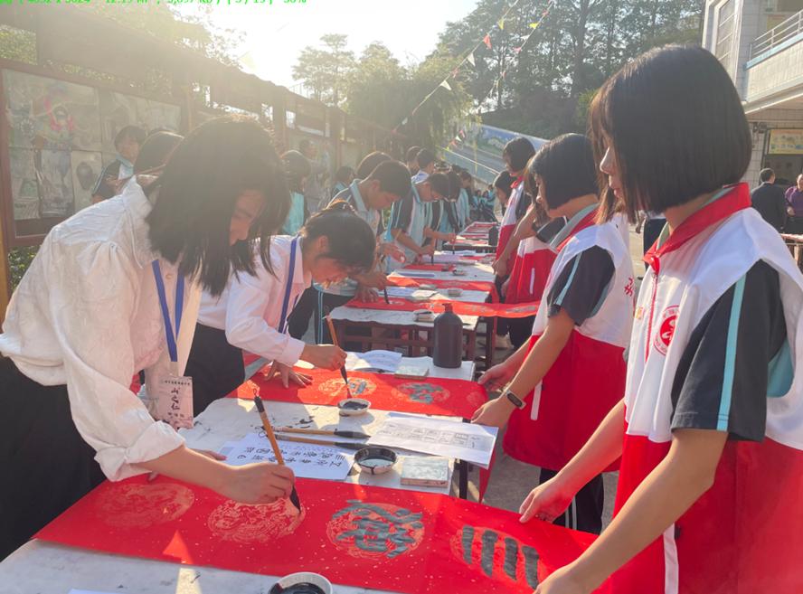 会后,领导与师生一行参观了莲都中学的美育成果,一同参与了由莲都中学书法社团师生及文学院书法实习生共同组织的 “我家春联我来写”现场书写活动。