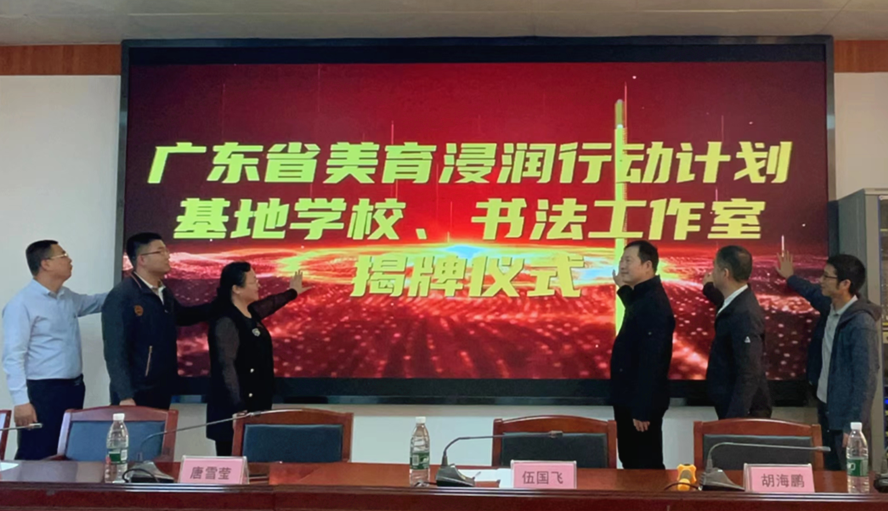 本网讯 11月24日,文学院院长唐雪莹带队赴封开县莲都中学开展美育浸润活动,与封开县教育局、莲都中学相关领导及师生一同举行“广东省美育浸润行动计划bat365正版唯一官网基地学校”“美育浸润书法工作室”授牌及聘书发放仪式,并围绕推动美育浸润工作、开展封开县中小学书法展赛等问题进行深入座谈。封开县教育局局长伍国飞,莲都中学校长刘武平出席座谈会。