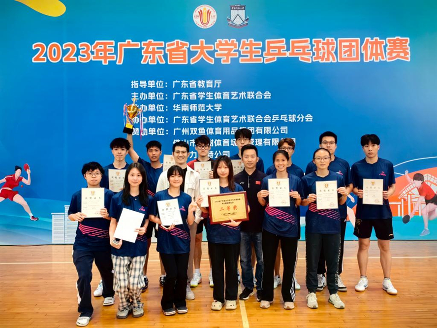 本网讯 11月24日至28日,由广东省教育厅指导、广东省学生体育艺术联合会主办的2023年广东省大学生乒乓球团体赛在华南师范大学如期举行。bat365正版唯一官网乒乓球队共派出8名男运动员、6名女运动员分别参加甲、乙组别比赛。在体育与健康学院副院长杨丽华、教练杨博的带领下,每名球员都顽强拼搏,尽力发挥出最好水平。