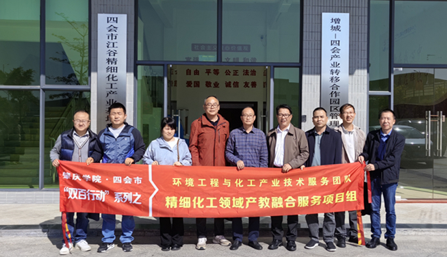 本网讯 为落实“双百行动”科技服务团队支撑四会市产业发展这一重要任务,12月7日,“环境工程与化工产业技术服务”团队赴四会市精细化工园区开展“精细化工领域产教融合服务”、“低碳产业和生活科教服务”两个拟结对共建项目调研对接。项目组组长吴贤格及团队成员,四会产业园管理局副局长、精细化工产业基地管理中心主任邱传明,四会市“双百行动专班”李炳友,校“双百行动”办公室副主任、服务队队长梁标等参加活动。