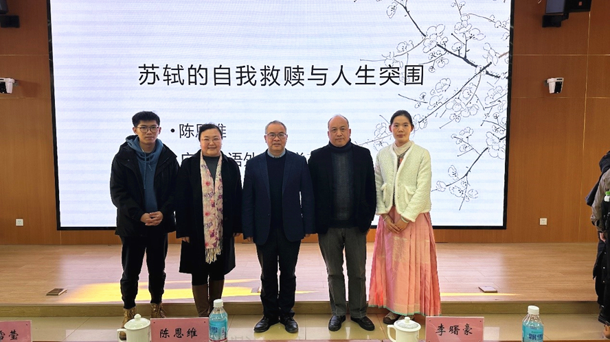 本网讯 12月26日,广东外语外贸大学陈恩维教授受邀到文学院作题为“苏轼的自我救赎与人生突围”学术讲座,bat365正版唯一官网学报主编李曙豪、文学院院长唐雪莹出席讲座。