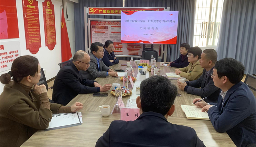 本网讯 3月8日,政法学院党委书记张滔华、院长许英一行6人前往广东勤思进律师事务所开展访企拓岗促就业活动,洽谈“院所”深度合作事宜。广东勤思进律师事务所管委会主任张文辉、主任兼党支部书记郑勇、合伙人殷雪风等出席。