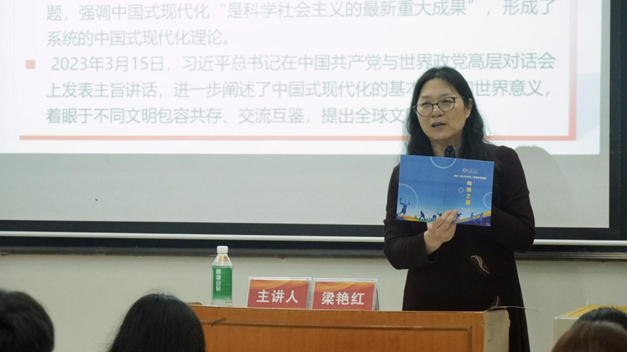梁艳红以《中国式现代化与新时代青年的使命担当》为主题,为来自三个年级的63名入党积极分子授课,勉励学生要树立远大目标,坚定理想信念。她表示,新时代青年要以党的二十大精神为引领,深刻领会其内涵和实质,努力学习专业知识,不断提升自身素养。同时,要培养创新精神和实践能力,积极投身于社会实践,在体测服务队、体能训练营中砥砺青春光华。