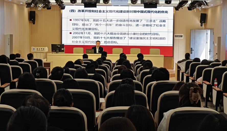 陈明华以《中国式现代化与新时代青年的使命担当》为题,以故事化的叙事方式拉开思政课序幕,快速将学生带入学习状态。课程回顾了中国式现代化的历史进程,阐释了中国式现代化的理论体系,鼓励青年学生勇于担当作为。