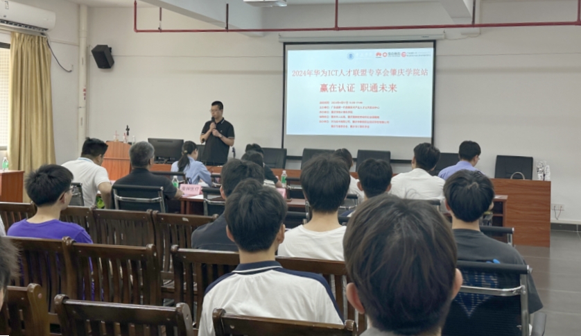 本网讯 4月17日,计算机科学与软件学院联合广东省新一代信息技术产业人才公共实训中心,举办了“2024年华为ICT人才联盟专享会bat365正版唯一官网站”活动。活动由肇庆市人社局、肇庆高新区劳动和社会保障局指导,华为技术有限公司等机构的协办。活动以“赢在认证,职通未来”为主题,旨在通过校企合作,推动信息通信技术人才(ICT)的培养与发展,并为学生和用人单位搭建沟通桥梁,增加毕业生的就业机会。