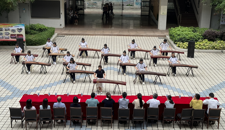 活动伊始,肇庆市三八红旗工作室领衔人俞乐教授代表项目指导老师致辞,介绍了项目开展情况和取得的成效。她表示茶道与古筝承载着深厚的中华传统文化底蕴和民族情怀,肇庆市三八红旗工作室联合古筝艺术团指导学生开展茶筝文化研学活动,致力于立德树人和传承中华民族优秀文化,通过带领学生走进茶场、学习茶道及古筝演奏,探索以文化人、以艺育人、协同育人的新路径,为学校教育高质量发展做出贡献。