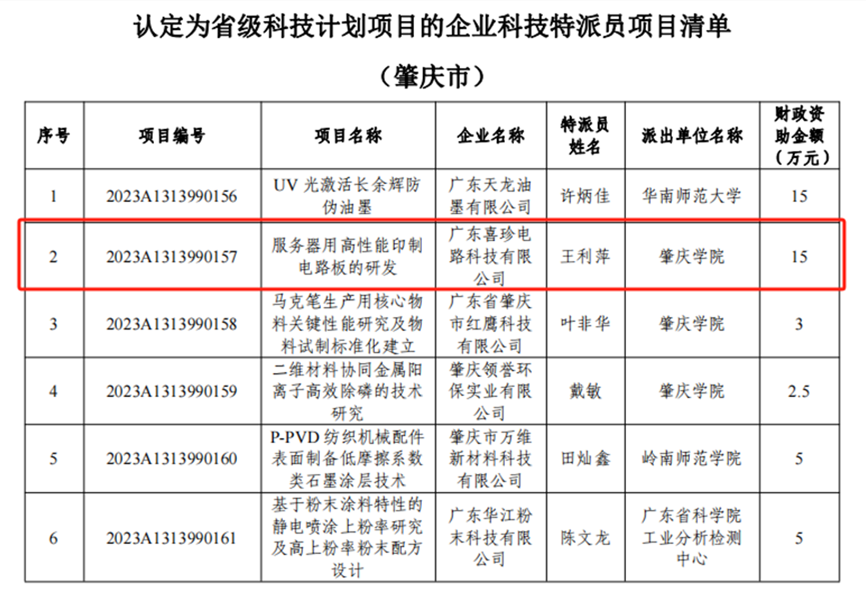 本网讯 近日,广东省科学技术厅印发通知,公布省级科技计划项目的企业科技特派员项目认定结果,电子学院王利萍老师作为特派员所承担的“服务器用高性能印制电路板的研发”项目被认定为省级科技计划项目的企业科技特派员项目,获财政资助金额15万元。
