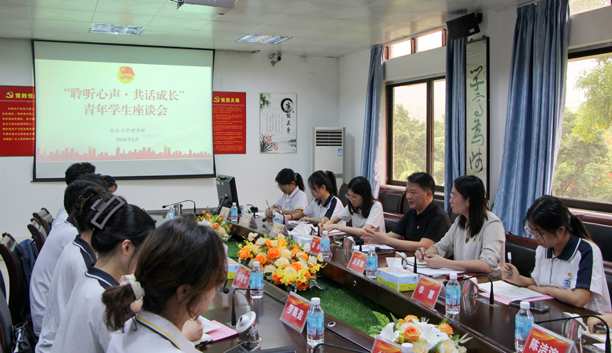 本网讯 5月9日,经济与管理学院举行主题为“聆听心声·共话成长”的青年学生座谈会,倾听青年的所思、所想、所盼,进一步凝聚青春力量。学院党委书记梁标、副书记巫燕娜,团委书记温文莉以及20名青年学生代表共同参会。
