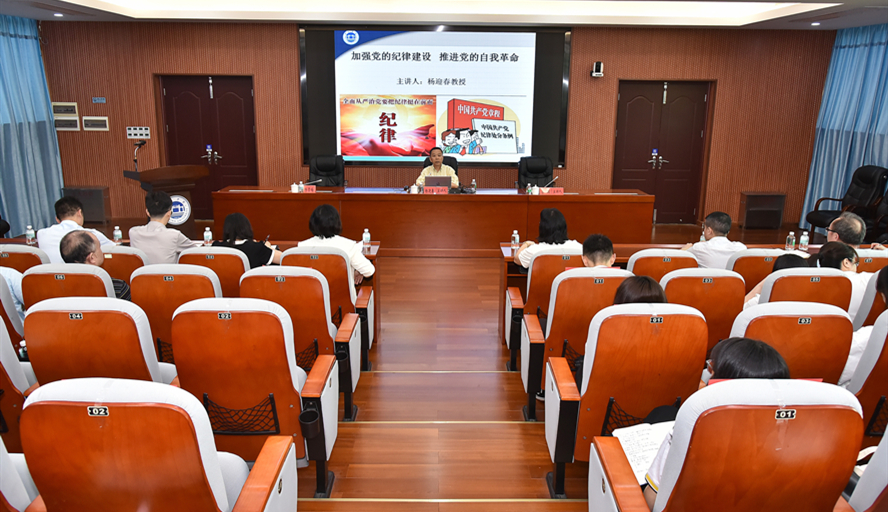 杨迎春结合理论阐析和案例分析,围绕三方面内容作了讲述:一是解决大党独有难题,必须勇于自我革命;二是纪律建设是党进行自我革命的利器;三是要把纪律规矩转化为政治自觉、思想自觉、行动自觉。他强调,作为党员干部,必须认真学纪,准确知纪,加强党性修养,严守政治纪律、组织纪律、廉洁纪律、群众纪律、工作纪律和生活纪律等六大纪律。