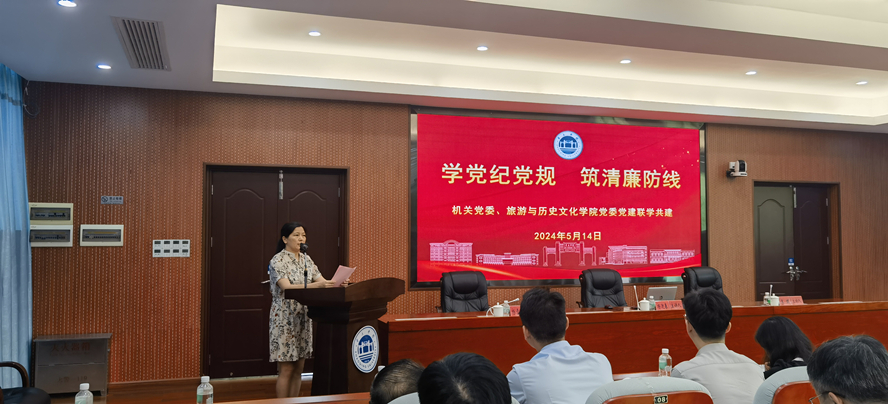 本网讯 5月14日,机关党委、旅游学院党委举行“学党纪党规 筑清廉防线”党建联学共建活动,特邀bat365退休教师、党史专家杨迎春教授作题为《加强党的纪律建设 推进党的自我革命》的辅导讲座,切实提升党员干部、党员教师对党纪党规的认识理解。