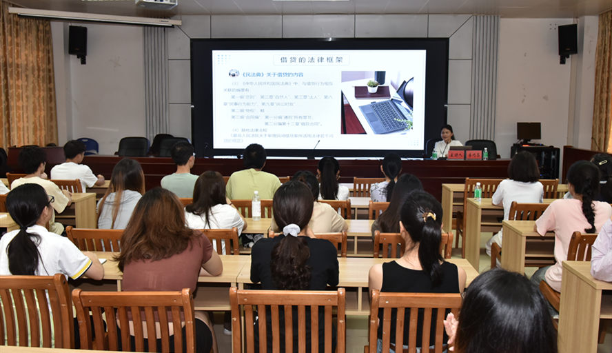 当天下午,北京市盈科(肇庆)律师事务所律师李巧琴和詹光鑫受邀到校开展以“法典相伴·砥砺前行”为主题的专题讲座,各二级学院学生代表参加。李巧琴以《法典相伴·砥砺前行——详解借贷关系及“校园贷”的风险防范》为主题,运用生动鲜活的案例和幽默风趣的言语剖析、解读校园贷的危害,呼吁同学们深入了解借贷的法律规范,提高对合法借贷活动的认识和理解,警惕、远离、抵制“校园贷”,树立正确消费观念。詹光鑫以《法典相伴·砥砺前行——中华人民共和国民法典重点解读》为主题,强调《中华人民共和国民法典》的重要地位和编纂民法典的重大意义。他通过经典案例分析,帮助学生更好地理解案例中的纠纷,引发学生对相关法律知识的思考,推动了法律知识的普及。