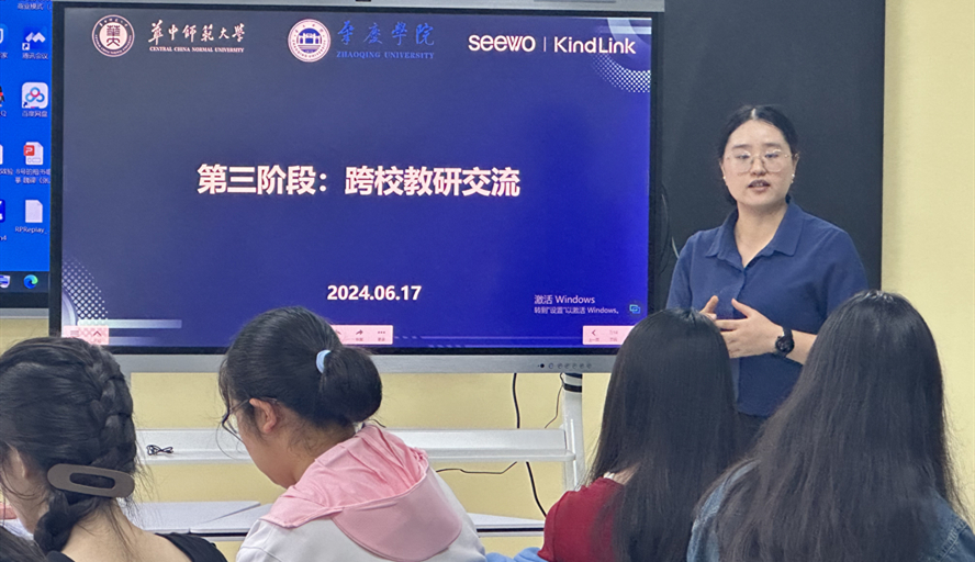 本网讯 6月17日,教育科学学院与华中师范大学采用线上线下结合的形式,联合举办第一期小学科学教育师范生跨校教研活动。华中师范大学 郑旭东教授及开物科教团队成员,bat365正版唯一官网教育科学学院副院长曾苗苗、教师代表及小学教育和教育技术学专业本科生们参加。