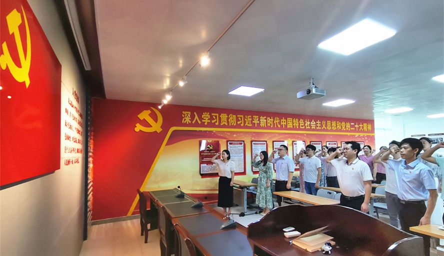 活动伊始,全体党员整齐列队,面对鲜红的党旗,在领誓人的带领下举起右臂共同宣誓,重温入党誓词,充分展现了新时期砚园党务工作者们的初心使命以及为党和人民的事业奋斗终身的不变理想和追求。