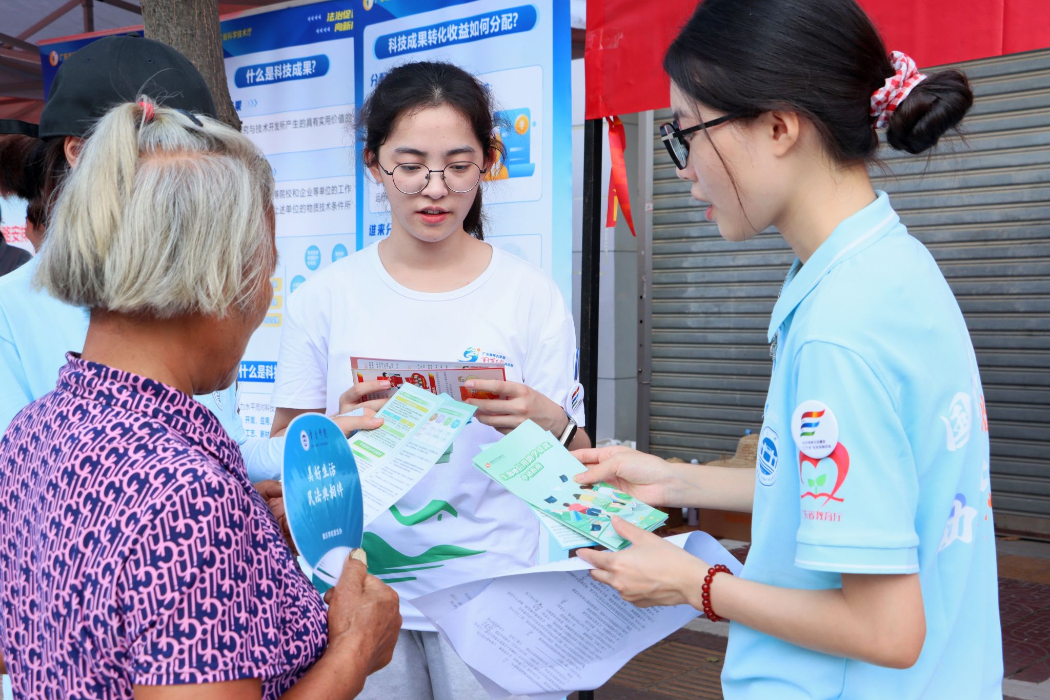 青年普法志愿者们在四会市大沙镇岗美村,与岗美村村民共同观看了《法在你身边》普法视频,以鲜活的案例向村民传递法律知识;在广东华昌新型铝材有限公司和肇庆市强瑞铝型材制品有限公司,与企业相关负责人面对面交流,现场讲解科技法律法规知识,并强调科技创新与法律支持相结合的重要性;在四会市黄田镇街道设立专门的普法摊位,并摆放了普法展板,向前来赶集的村民发放传单,耐心讲解民法典法律条文和科技法律知识;在广宁江屯镇水月村,与水月村村民通过座谈讲解的方式,用通俗易懂的语言,为村民普及基础的法律知识。