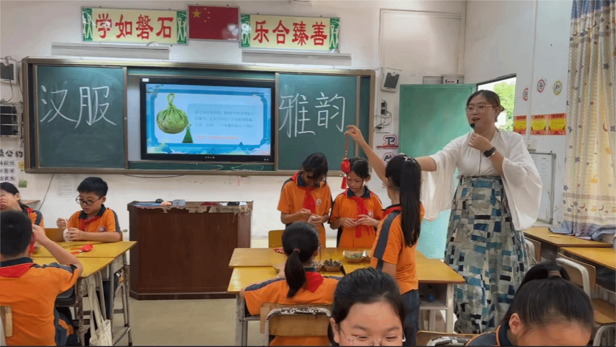 在本次义教中,结合马岗小学的少数民族色彩,实践团将民族拓印与心理课堂相融合,开设《拓迹寻我》课程,引导学生们在拓印中探索自我。围绕汉服、团扇与香囊,实践团开设《汉服雅韵,书扇飘香》课程,让学生们在实践中感受中华传统文化的魅力。此次跨越历史长河的融合,有利于培育学生们的民族认同感,铸牢中华民族共同体意识。