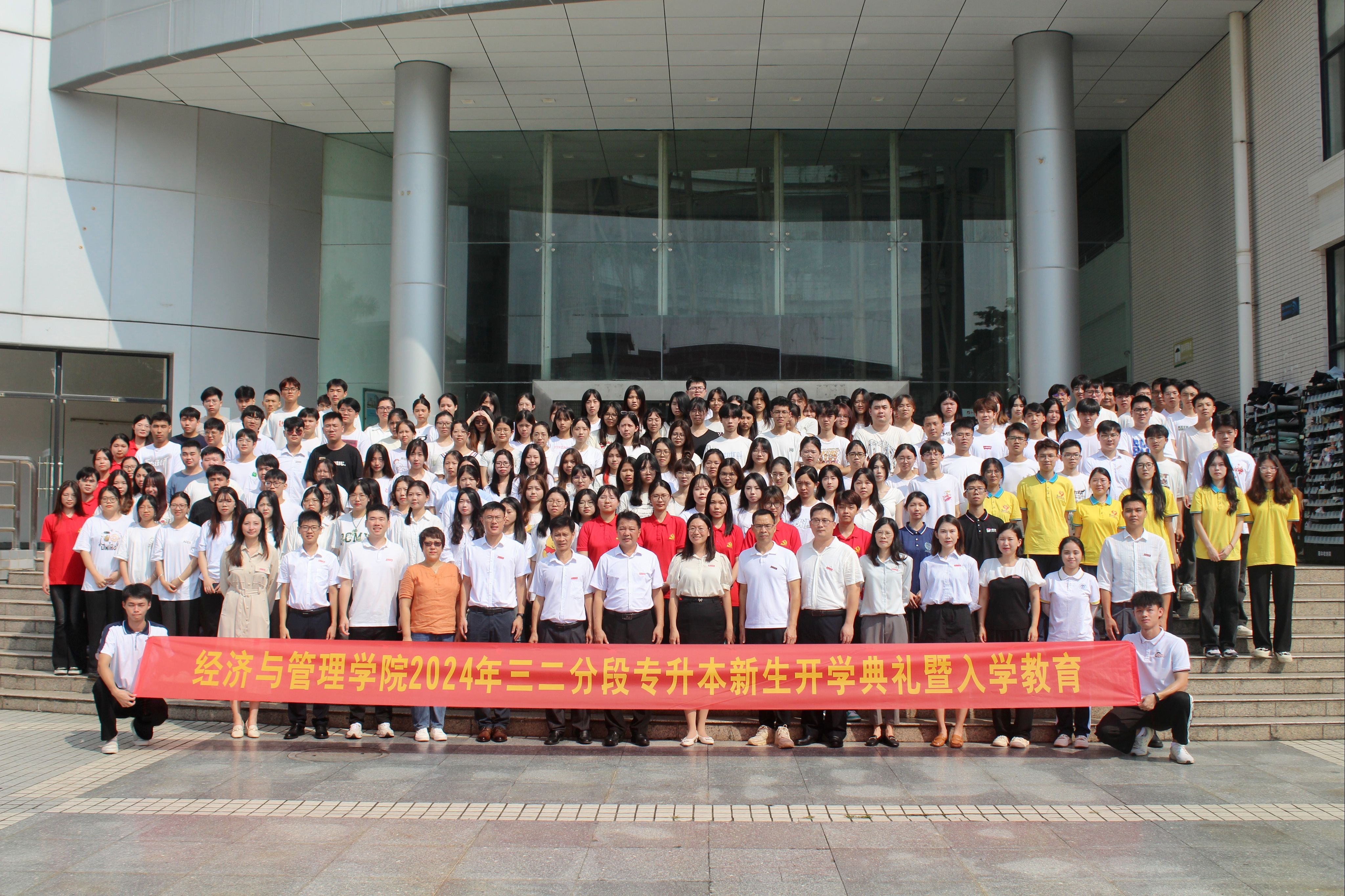 本网讯 9月2日,经济与管理学院举办了2024年三二分段专升本新生开学典礼暨入学教育,通过仪式育人实践,传递了“脚踏实地、在平凡中追求进步”的经管人精神,更为新生们的大学生活和人生道路奠定了坚实的基础。学院领导班子、各系主任、各专业负责人、实验中心主任、辅导员、班主任、教务秘书以及全体新生参加典礼。