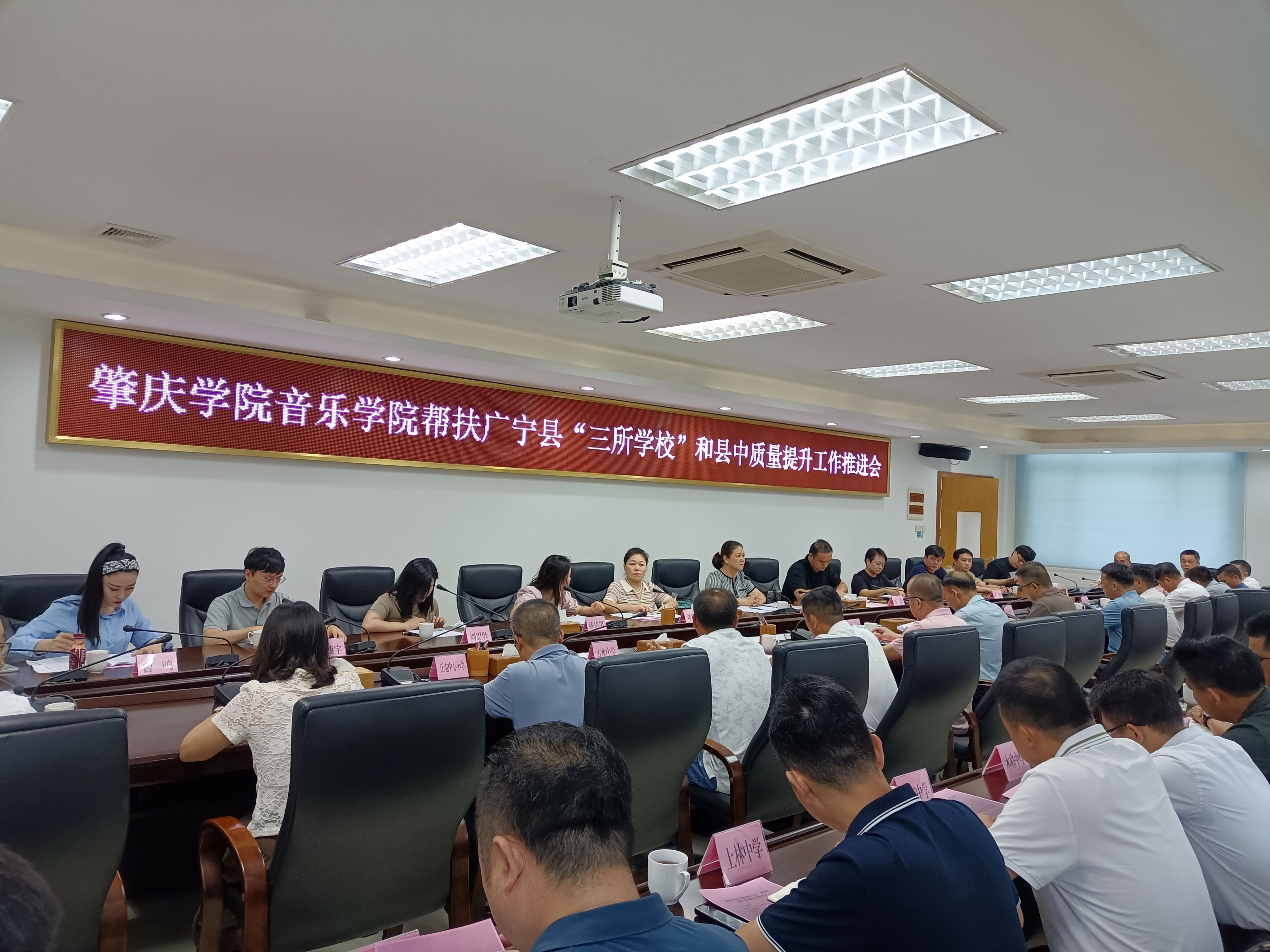本网讯 9月20日,音乐学院帮扶广宁县“三所学校”和县中质量提升工作推进会在广宁县政府召开。广宁县人民政府副县长唐志鹏、教育局局长梁军,音乐学院党委书记胡隼、音乐学院副院长王涛和教师帮扶团队,广宁县相关股室负责人以及广宁县全体中小学校长参加推进会。