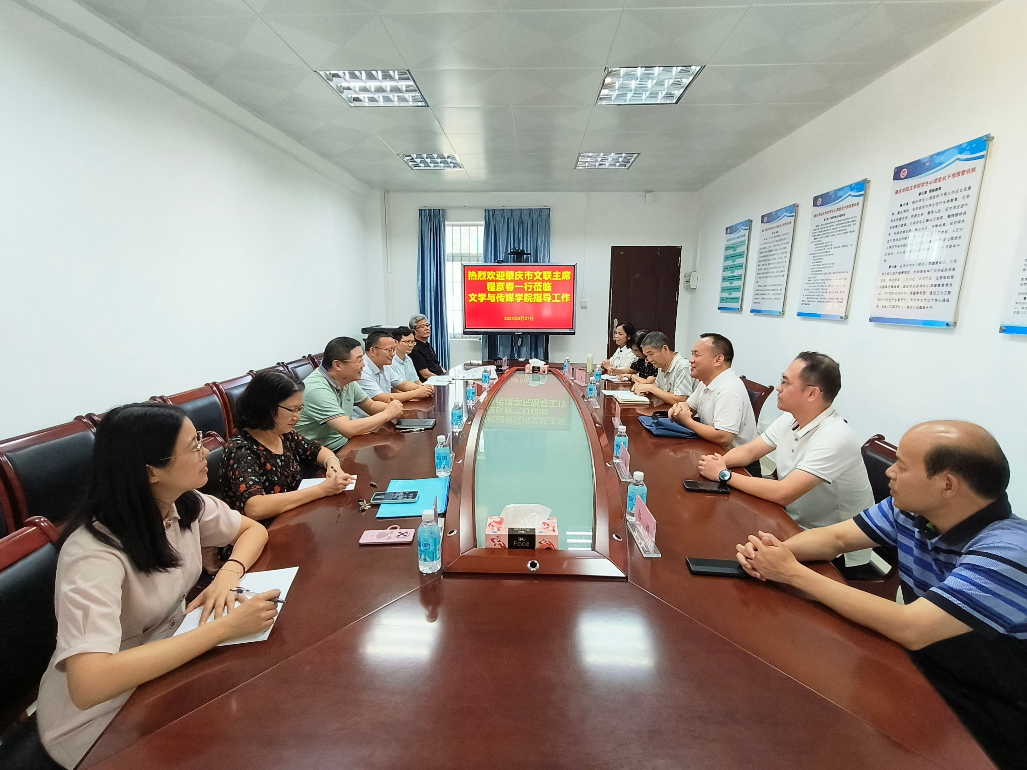 本网讯 9月27日,肇庆市文联党组书记、主席程彦春莅临文传学院调研,会议由文传学院教授、市文艺评论家协会主席黎保荣主持。